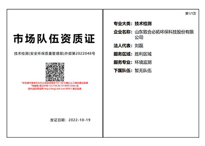 山東致合必拓環(huán)保科技股份有限公司成立于2015年3月,總投資3000萬(wàn)元,是山東省市場(chǎng)監(jiān)管局計(jì)量認(rèn)證合格的第三方檢測(cè)機(jī)構(gòu),取得CMA資質(zhì)認(rèn)定,是省級(jí)專精特新企業(yè)、高新技術(shù)企業(yè)、是市級(jí)重合同守信用企業(yè)。